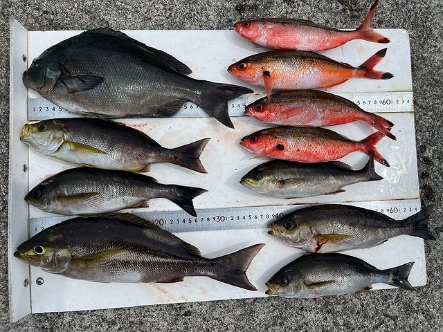 【釣り人】御所市 阪本雅宜さん【釣 果】イサキ 26cm~37cm 6匹 尾長 36.5cm 1匹 【釣り方】カゴ釣り【水 温】21.5度 【海 上】多少波 【 潮 】下り・遅い 【釣り人】四日市市 戸瀬 歩さん【釣 果... -