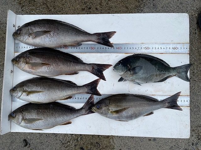 【釣り人】大和高田市 水本吉洋さん【釣 果】イサキ 30cm~37cm 5匹 尾長 28cm 1匹 【釣り方】フカセ釣り 【水 温】度 【海 上】ナギ 【潮 】下り・遅い -