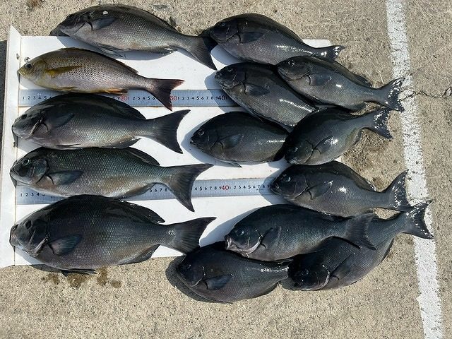 12日は大シケの為、お休みでした。 13日はウネリが残る為、お休みさせていただきました。 【釣り人】宇陀市 勝山常雄さん 釣れすぎて、昼までの釣果でした。【釣 果】ぐれ 40.2cm~46.7cm 5匹 ぐれ 33cm~39cm 13匹【... -