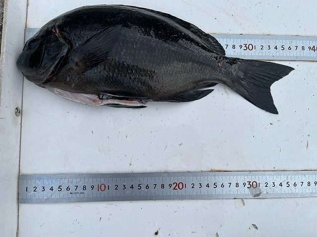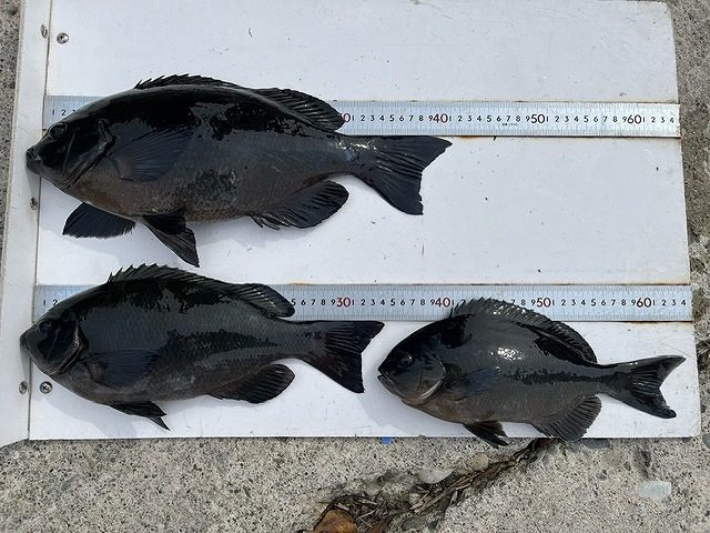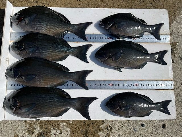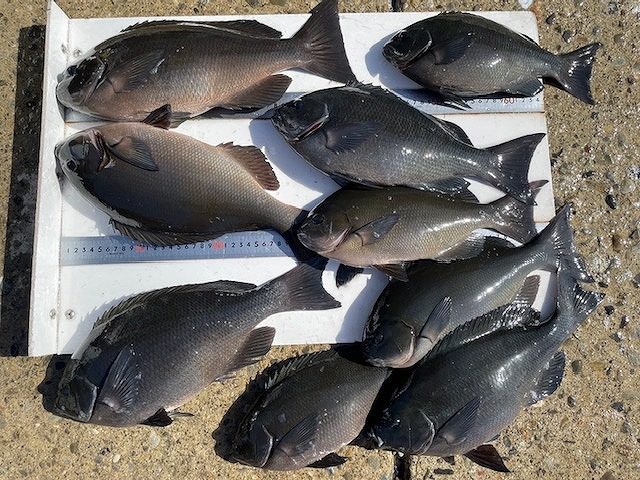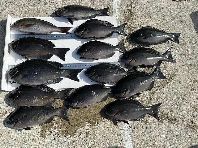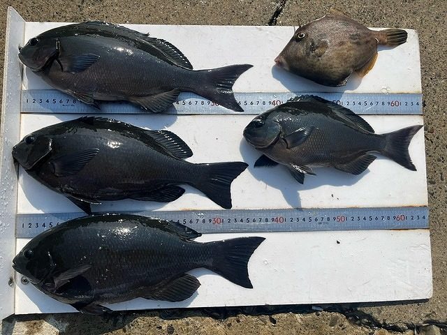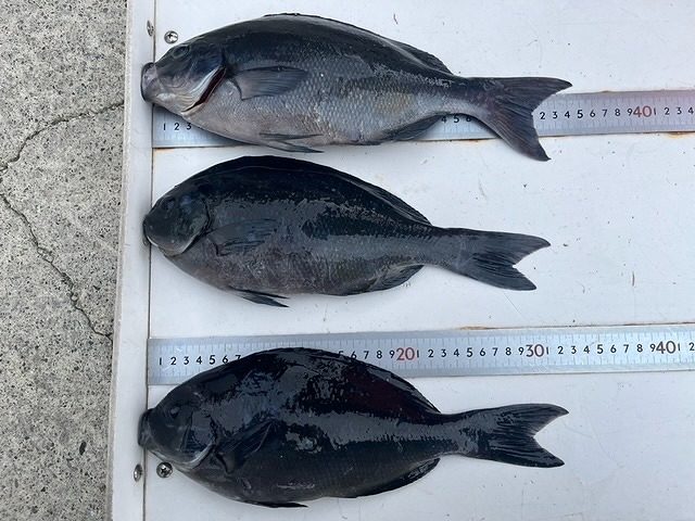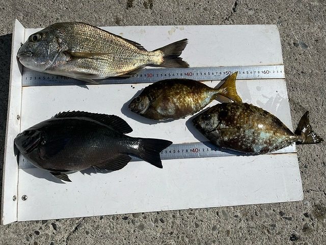 【釣り人】枚方市 岡南次郎さん 【釣 果】ぐれ 34.8cm 1匹 ヘダイ 41cm 1匹 アイゴ 2匹 【釣り方】フカセ釣り【水 温】16.4度 【海 上】ナギ 【 潮 】上り・遅い -