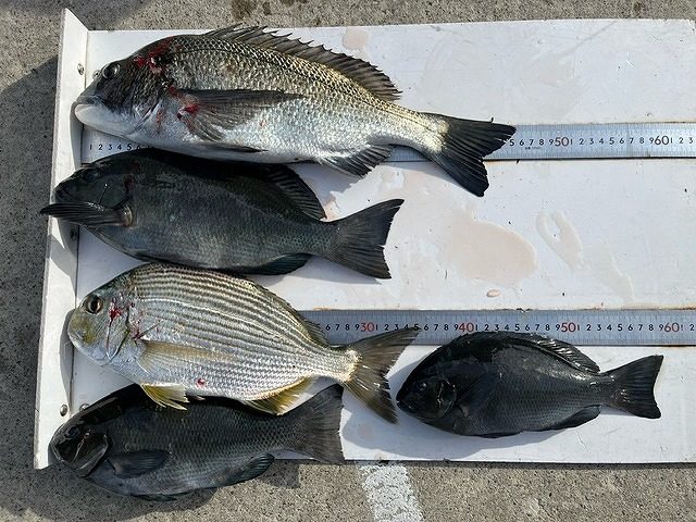 【釣り人】堺市 堀 智行さん フカセ釣り二回目で、尾長 41cm 自己新記録おめでとう !!【釣 果】尾長 40.6cm~41cm 2匹 ぐれ 41cm~46cm 3匹【釣り方】フカセ釣り【水 温】18.2度 【海 上】ナギ 【 潮 】下り・遅... -