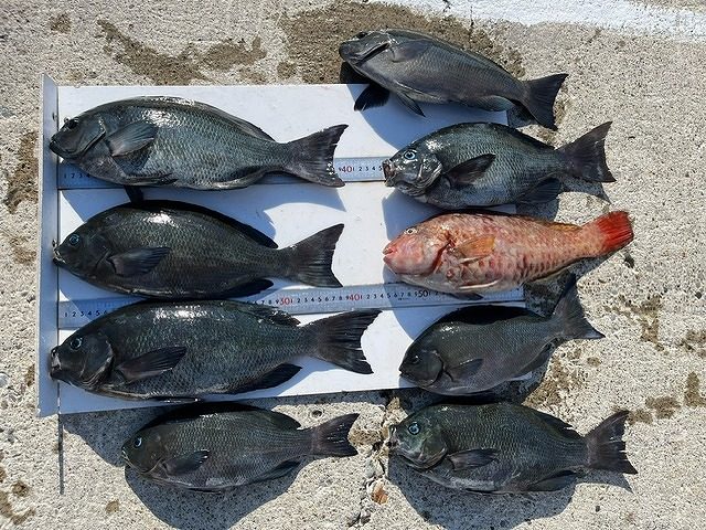 【釣り人】松原市 北野功大さん【釣 果】ぐれ 40cm~44.1cm 3匹 ぐれ 32.5cm~36cm 4匹 尾長 32.5cm 1匹 イガミ 39cm 1匹【釣り方】フカセ釣り 【水 温】21.8度 【海 上】ナギ 【... -