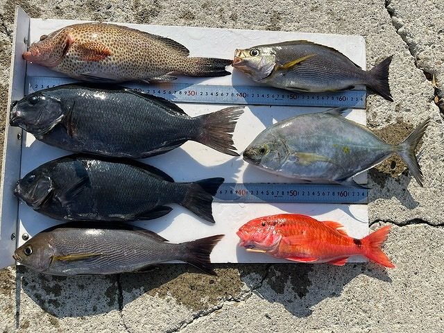 【釣り人】岐阜市 木村正幸さん、木村幸一さん【釣 果】アカハタ 2匹 アイゴ 5匹 イシガキ 2匹 オジサン 2匹 ベラ 2匹 ガシ ... -