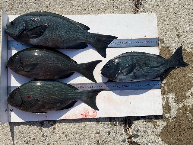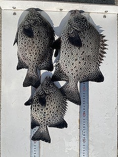 【釣り人】枚方市 岡南次郎さん 【釣 果】イシガキ 26cm~37cm 3匹 【釣り方】底物釣り【水 温】22.5度 【海 上】ナギ 【 潮 】下り・遅い -
