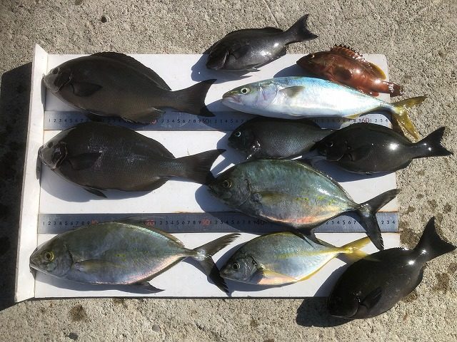 【釣り人】木津川市 柳 めぐみさん【釣 果】尾長 33cm~34cm 2匹 カイワリ 36.5cm 2匹 シマアジ 1匹 ツバス 1匹【釣り方】フカセ釣り【水 温】23.2度 【海 上】ナギ ... -