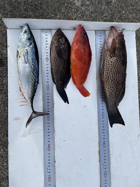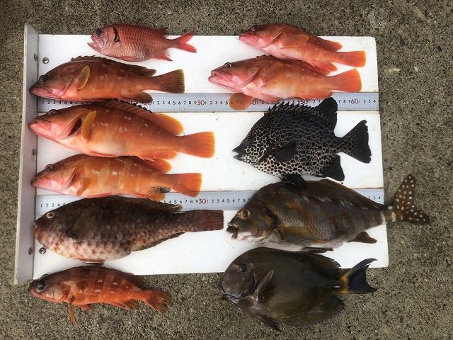 【釣り人】名古屋市 清水伸介さん 【釣 果】アカハタ 29cm~33cm 6匹 イガミ 34cm 1匹 その他・・・・・・・・・・【釣り方】ズボ釣り【水 温】23.2度 【海 上】ナギ 【 潮 】上り・速い  ... -