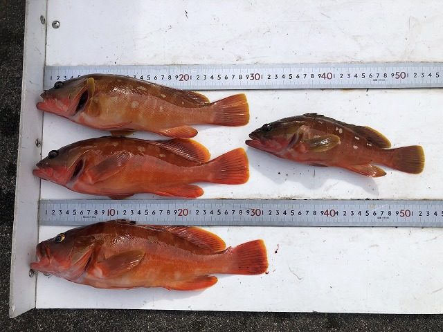 【釣り人】奈良市 沢田真幸さん 【釣 果】アカハタ 29cm~36.4cm 5匹 アカハタ、25cm以下を30匹以上釣り上げましたが 全部リリースしてきました。【釣り方】ルアー釣り【水 温】25.6度 【海 上】ナギ 【 ... -
