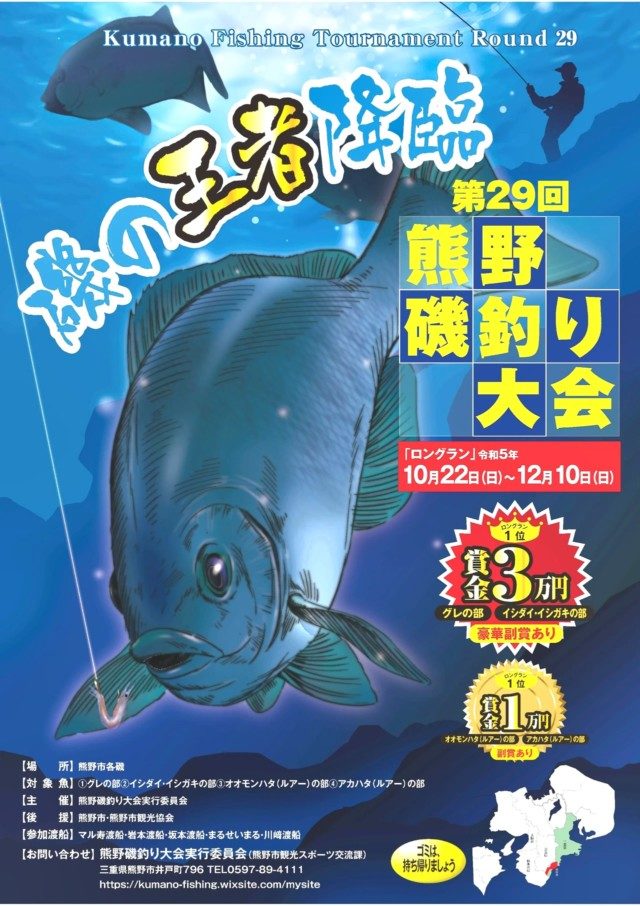 【釣り人】南牟婁郡 阪口記生さん【釣 果】イシガキ 40cm~44cm 2匹 【釣り方】底物釣り【水 温】24.2度 【海 上】ナギ 【 潮 】下り・遅い 【釣り人】橿原市 畠山さん 【釣 果】オジサン 29cm~38cm 3匹 【釣り... -