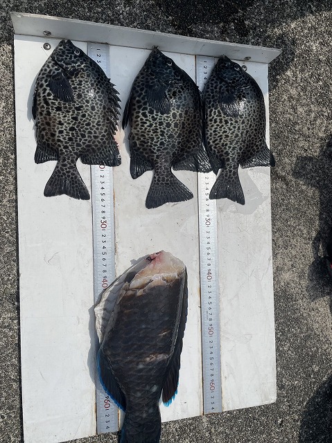 【釣り人】東大阪市 田中良明さん 【釣 果】イシガキ 26cm~28cm 3匹 アオブダイ 1匹【釣り方】底物釣り【水 温】26.0度 【海 上】多少波 【 潮 】上り・遅い -