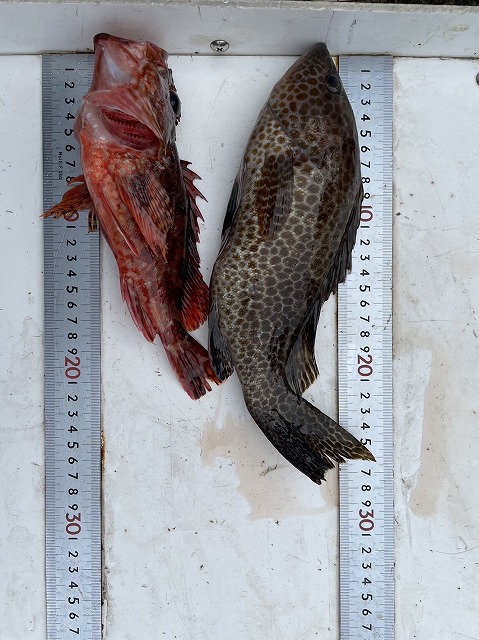 【釣り人】稲沢市 木本 快さん 【釣 果】アカハタ 30cm 1匹 イシガキ 25cm~26cm 2匹 ヤイトガツオ 30cm 1匹 ソウダガツオ 28cm 1匹 サンノジ 34cm 1匹 ... -