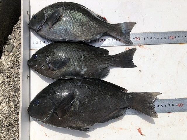 【釣り人】泉大津市 佐藤克司さん【釣 果】ぐれ 33cm~35cm 4匹【釣り方】フカセ釣り【水 温】度 【海 上】高波 【 潮 】下り・遅い -