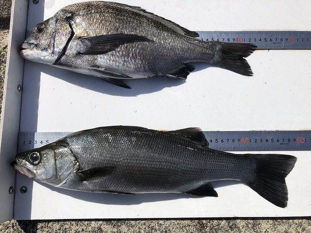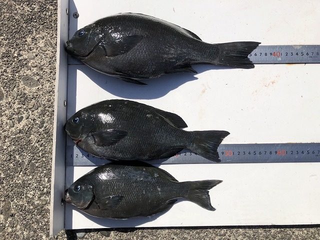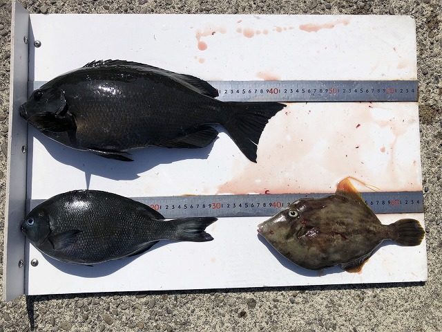 【釣り人】枚方市 岡南次郎さん【釣 果】ぐれ 42.3cm 1匹 尾長 30.3cm 1匹 カワハギ 28.6cm 1匹【釣り方】フカセ釣り【水 温】度 【海 上】ナギ 【 潮 】上り・遅い -
