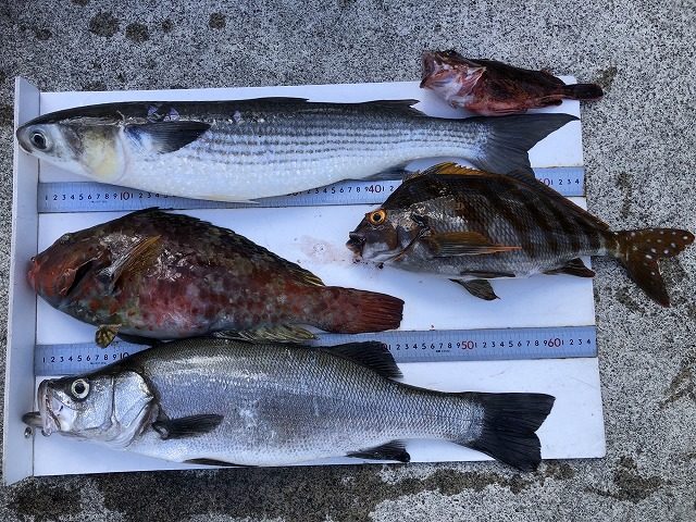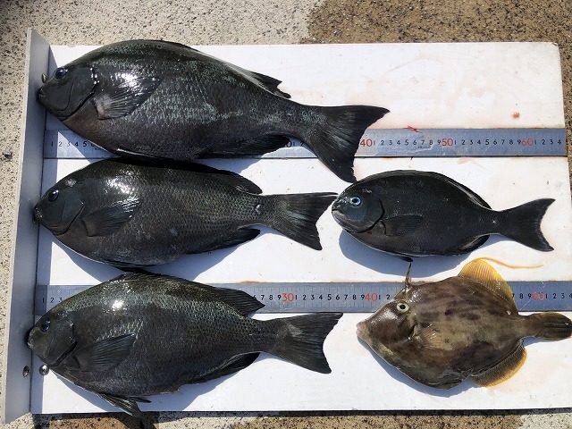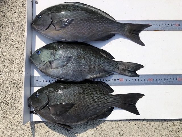 【釣り人】横浜市 三沼信治さん【釣 果】尾長 41cm 1匹 ぐれ 38cm 2匹 【釣り方】フカセ釣り【水 温】16.1度 【海 上】ナギ 【 潮 】下り・遅い -