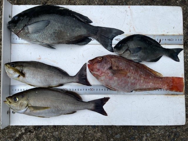 【釣り人】堺市 打越 透さん 【釣 果】尾長 25cm~30cm5匹 チヌ 45cm~48cm 2匹 オジサン 39.5cm 1匹 イガミ 2匹 アカハタ 1匹 【釣り方】フカセ釣り 【水 温】18.8度...