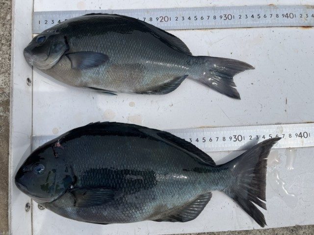 【釣り人】宇陀市 勝山常雄さん【釣 果】イサキ 30cm~37cm 2匹 ぐれ 42.5cm 1匹 イガミ 36cm 1匹【釣り方】フカセ釣り 【水 温】19.2度 【海 上】高波 【 潮 】下り・速い 【釣り人】枚方市 岡南次郎さ... -
