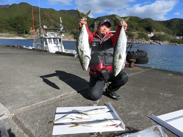 【釣り人】上北山村 大谷信雄さん 【釣 果】イガミ 28.5cm~39cm 7匹 【釣り方】イガミ釣り 【水 温】19.2度 【海 上】多少波 【 潮 】下り・速い 【釣り人】稲沢市 小久保 貴章さん 【釣 果】ハマチ... -