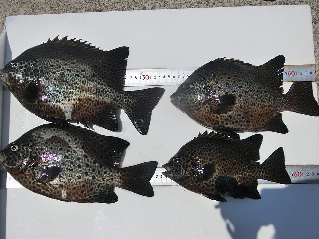 【釣り人】奈良市 橋本幸男さん 【釣 果】イシガキ 26cm~34cm 4匹 【釣り方】底物釣り 【水 温】27.5度 【海 上】ナギ 【 潮 】下り・速い