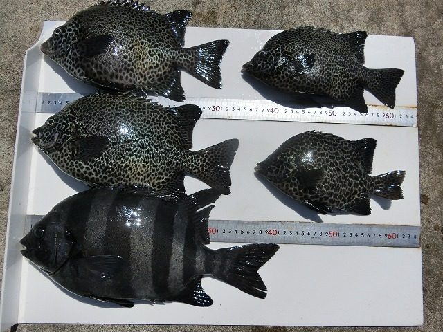【釣り人】東大阪市 田中良明さん 【釣 果】石鯛 41.3cm 1匹 イシガキ 25.5cm~34.5cm 4匹 【釣り方】底物釣り 【水 温】26.8度 【海 上】多少波 【 潮 】上り・速い 【釣り人】和泉市... -