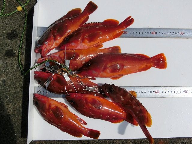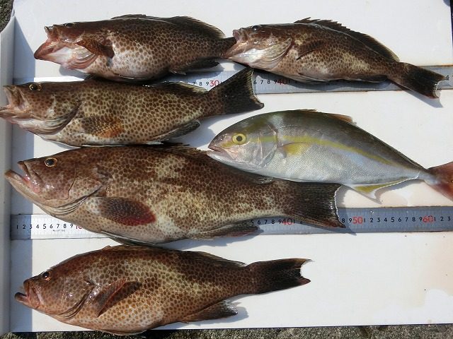 【釣り人】稲沢市 小久保 貴章さん 【釣 果】アカハタ 24.5cm~31cm 8匹 【釣り方】ルアー釣り 【水 温】26.8度 【海 上】多少波 【 潮 】下り~上り・速い 【釣り人】橿原市 畠山さん 【釣 果】イガミ 37cm... -