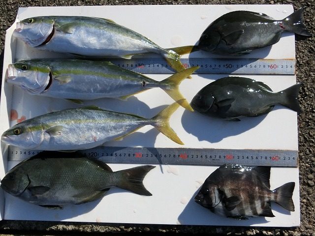 【釣り人】名古屋市 会田 潤さん 【釣 果】ハマチ 41.5cm~46cm 3匹 アカハタ 22cm~28cm 3匹 ガシ 5匹 チヌ 42cm 1匹 【釣り方】フカセ釣り・ルアー釣り 【水 温...