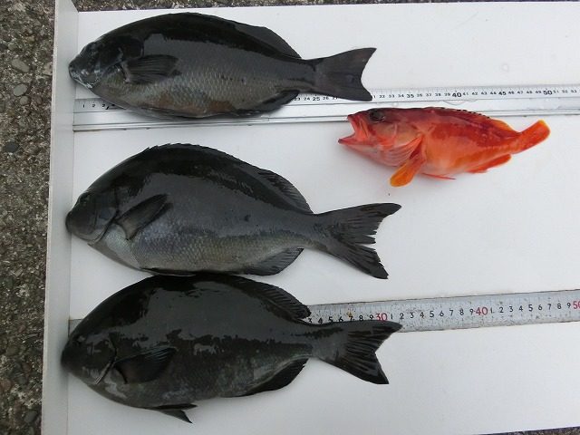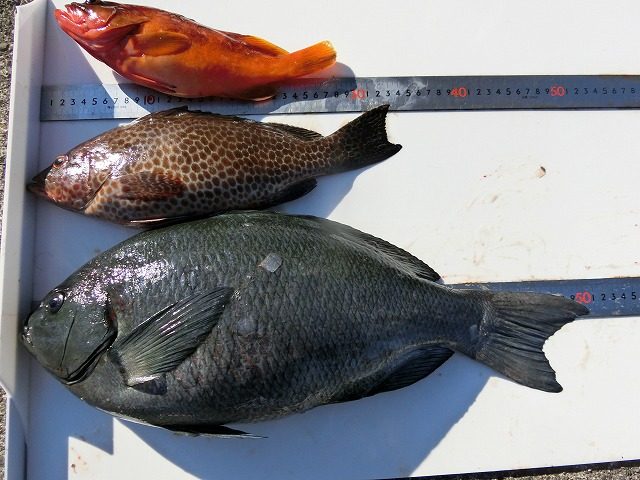 【釣り人】多治見市 長野秀男さん、 【釣 果】アカハタ 27cm 1匹 オオモンハタ 34.5cm 1匹 ぐれ 50.5cm 1匹 【釣り方】ルアー釣り・ズボ釣り 【水 温】19.8度 【海 上】ナギ 【 潮 ... -