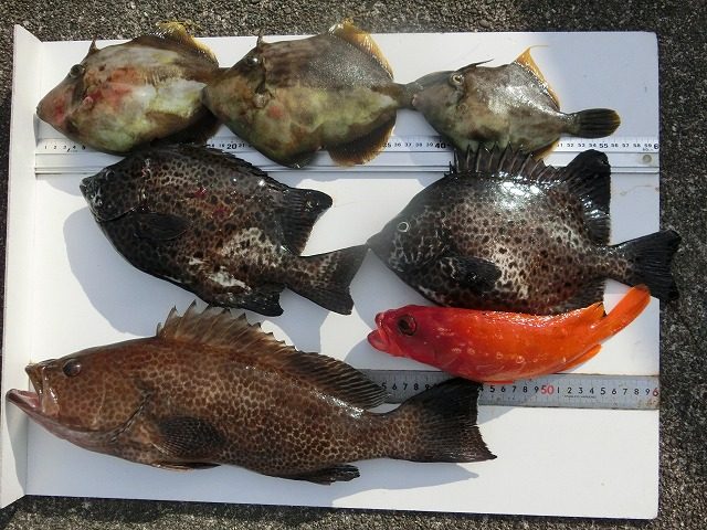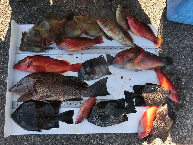【釣り人】大阪市 大地 正さん 【釣 果】オオモンハタ 39cm 1匹 イシガキ 4匹 カワハギ 4匹 アカハタ 1匹 その他 【釣り方】底物釣り 【水 温】21.3... -