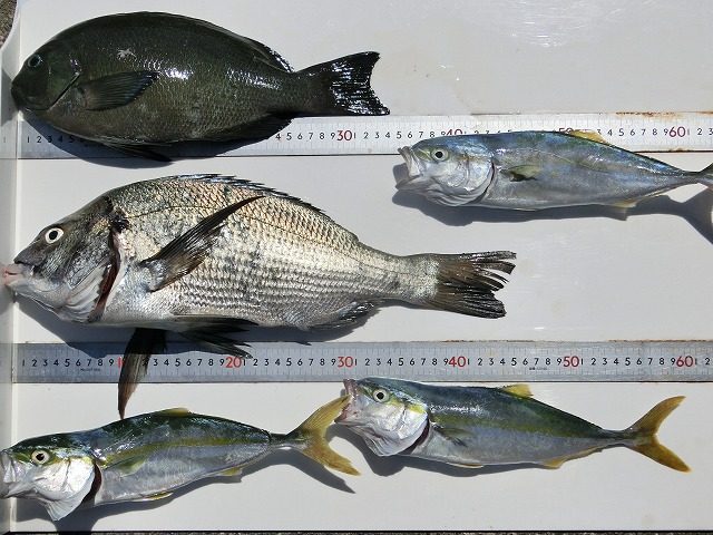 【釣り人】奈良市 柳 康政さん 【釣 果】ぐれ 34.3cm 1匹 チヌ 36cm 1匹 ツバス 30cm 3匹 ツバスは、入れ食いでした。 【釣り方】フカセ釣り 【水 温】27.3度 【海 上】高波 【 潮 】下... -