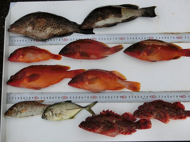【釣り人】神戸市 増田陽充さん 【釣 果】アカハタ 23.7cm~32.5cm 9匹 ガシ 1匹 【釣り方】ルアー釣り 【水 温】25.6度 【海 上】多少波 【 潮 】下り・速い 【釣り人】大阪市 ... -