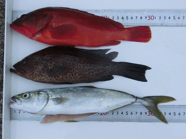 【釣り人】揖斐郡 佐藤翔悟さん。 【釣 果】アカハタ 19cm~28cm 5匹 オオモンハタ 26cm~31cm 2匹 鬼カサゴ 25cm 1匹 【釣り方】ルアー釣り 【水 温】26.2度 【海 上】高波 【 潮 ... -