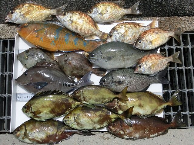 【釣り人】岐阜市 木村正幸さん 【釣 果】メイチダイ 6匹 カワハギ 2匹 アイゴ 6匹 イガミ 1匹 サンノジ 1匹 【釣り方】ズボ釣り 【水 温】 【海 上】南の波、多少...