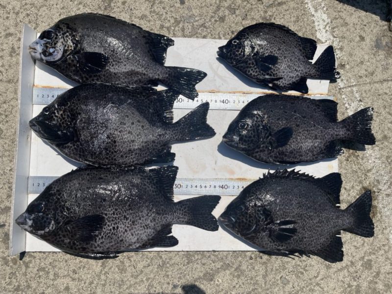 【釣り人】南牟婁郡 田中耕作さん 【釣 果】イシガキ27.5cm~37cm 6匹【釣り方】底物釣り【水 温】24.5度 【海 上】ナギ 【 潮 】下り~上り・速い